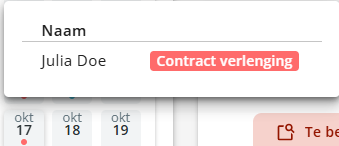 Kortom: Een gekleurde stip geeft aan dat er die dag een gebeurtenis is rondom 1 of meerdere medewerkers. De medewerkers-widget helpt je dus om proactief te plannen en aandacht te besteden aan belangrijke momenten: