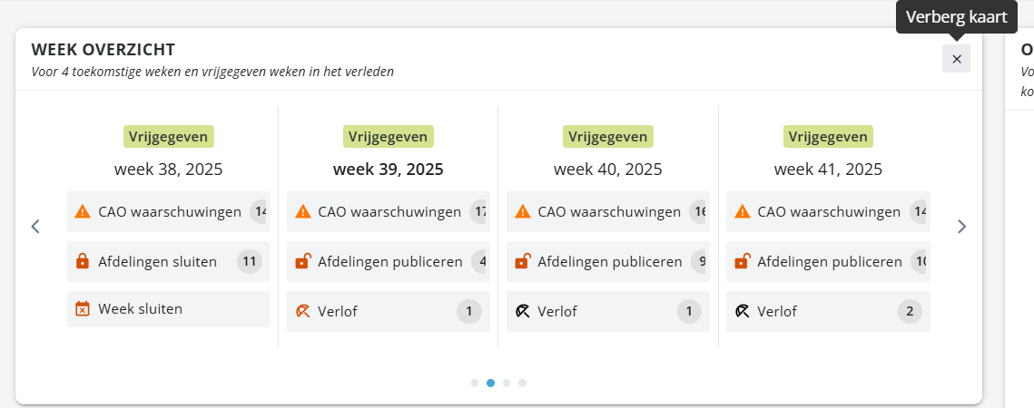 Klik op het kruisje met de beschrijving Verberg widget van de widget(s) die jij (tijdelijk) niet meer wil tonen. De widget verdwijnt direct van je dashboard.