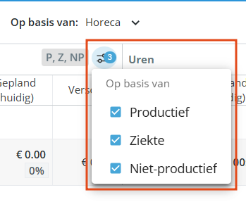 - De optie percentage. Deze optie staat standaard uit, en toont bij loonkosten een percentage. Dit is het percentage loonkosten ten opzichte van de omzet.