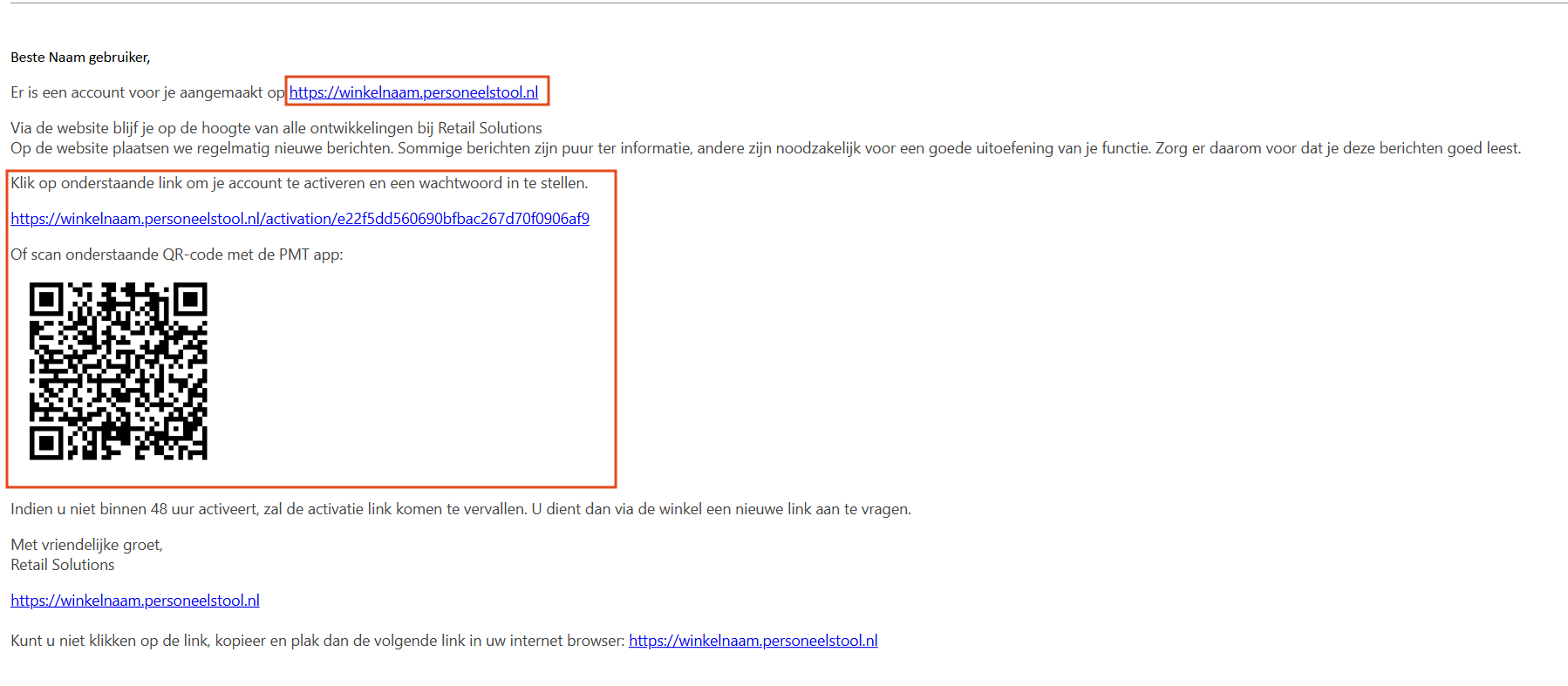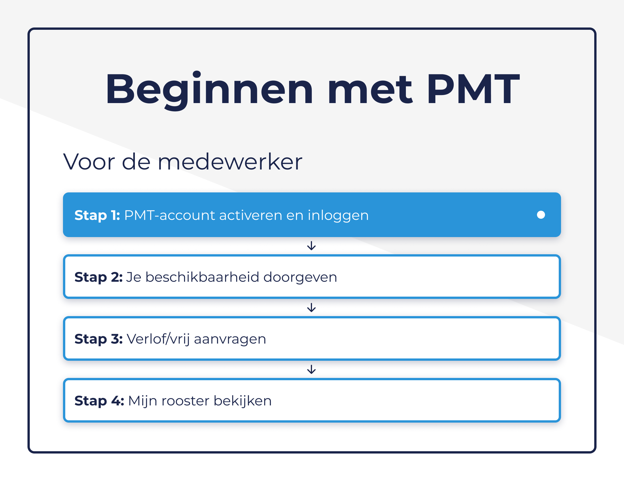 Om met PMT te starten moet je eerst je account activeren. Je hebt hiervoor van jouw leidinggevende via PMT een e-mail gekregen van noreply@personeelstool.nl op jouw emailadres die bij jouw winkel bekend is. In die mail staat een link waarmee je jouw account activeert.