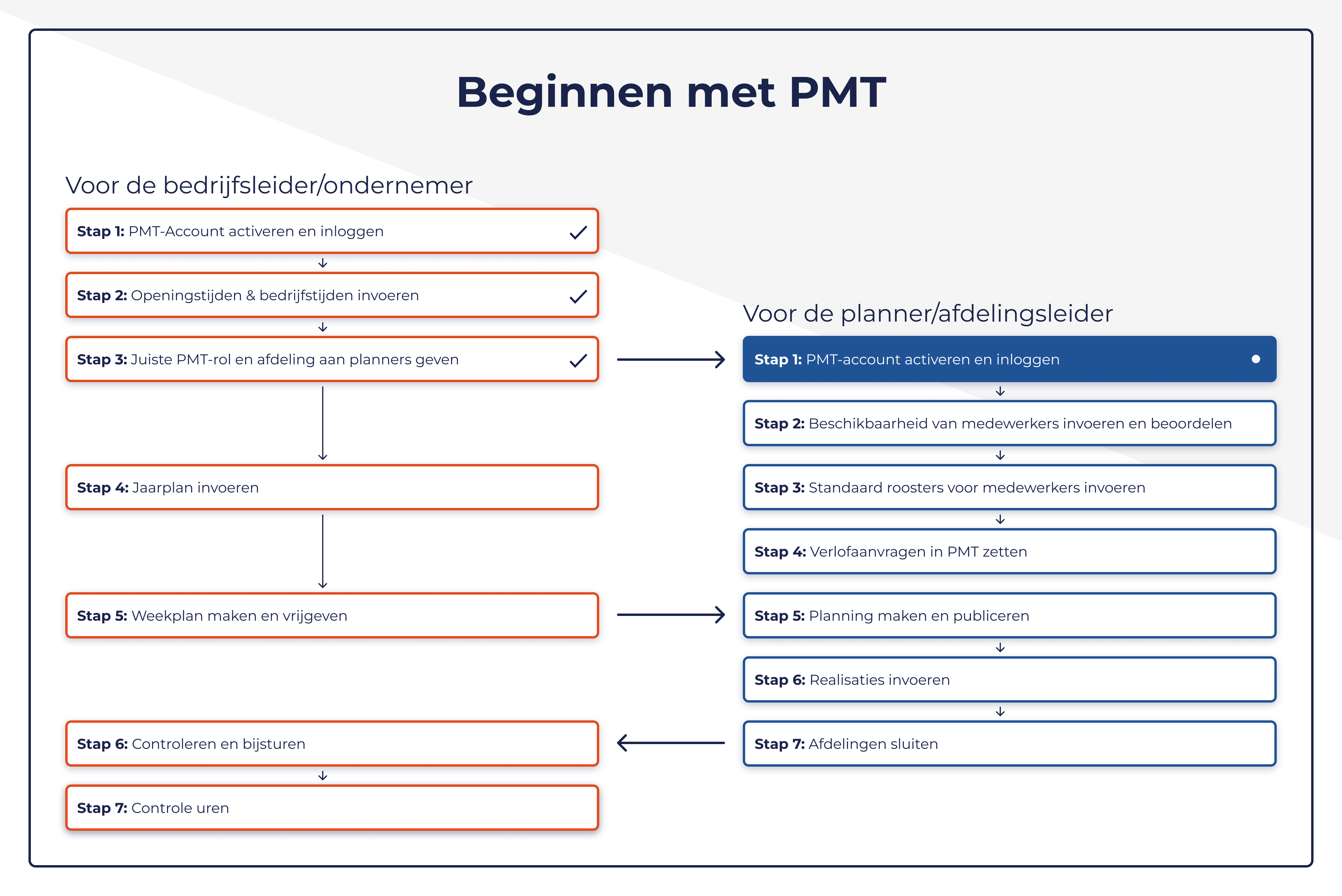 Als je inlogt met je gekozen gebruikersnaam en wachtwoord, kun je meteen beginnen met PMT!
