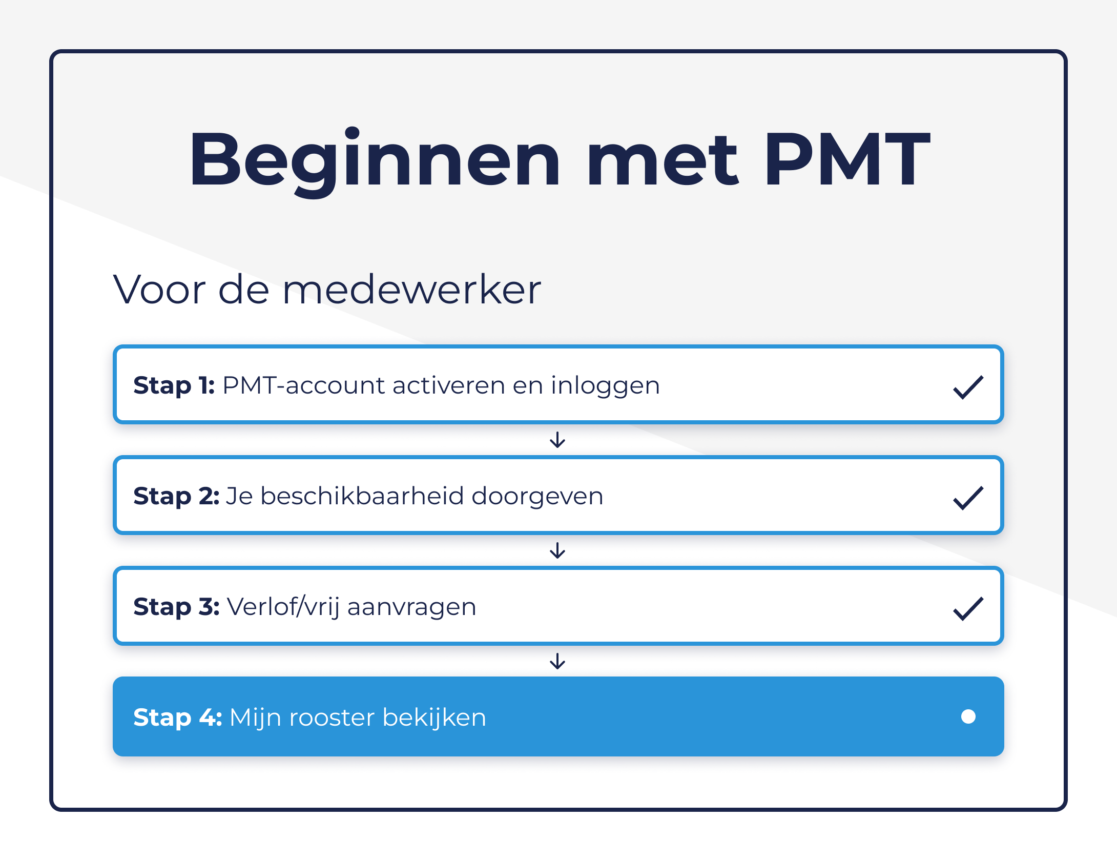Als je Stap 1 t/m 4 van Beginnen met PMT: De medewerker hebt gevolgd, ben je helemaal klaar om met PMT te werken!