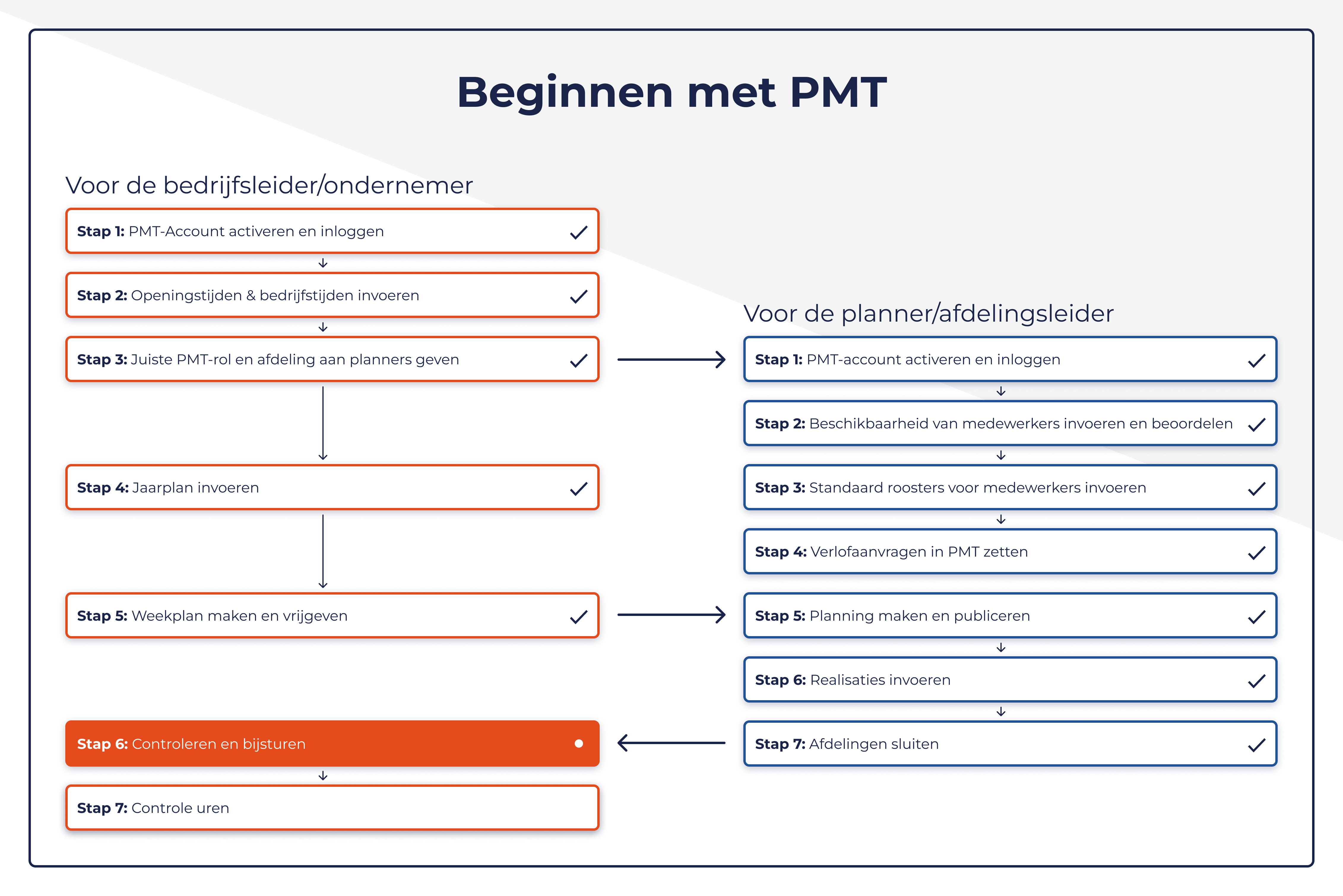 Je doet dit via de Stuurinformatie-pagina in PMT. Hier zie je in één overzicht: